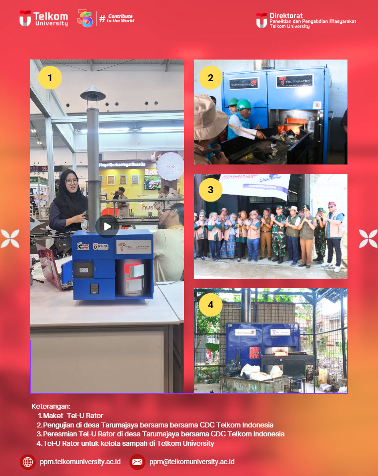 Pengelolaan sampah yang aman, efektif, dan tidak mencemari lingkungan kini semakin dekat diwujudkan melalui inovasi karya anak bangsa. Tel-U Rator, insinerator berteknologi tinggi hasil riset Drs. Suwandi, M.Si. dan tim peneliti Telkom University, menjadi salah satu solusi konkret dalam upaya menjaga kebersihan lingkungan dan mengurangi ketergantungan pada metode pembuangan tradisional seperti pembakaran terbuka yang menghasilkan polusi.